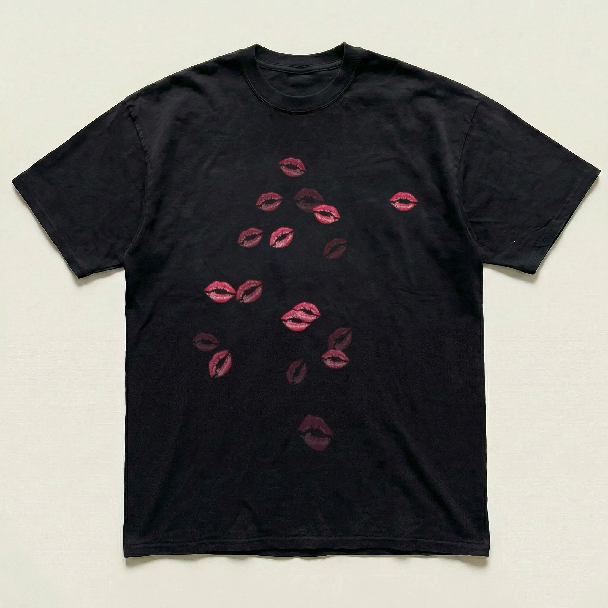 This black tee features a bold lip print, adding a touch of edgy style to your wardrobe. Made from soft, comfortable fabric, it’s perfect for casual wear or layering. Easy to pair with jeans or skirts, this tee brings a playful yet chic vibe to your everyday outfits.