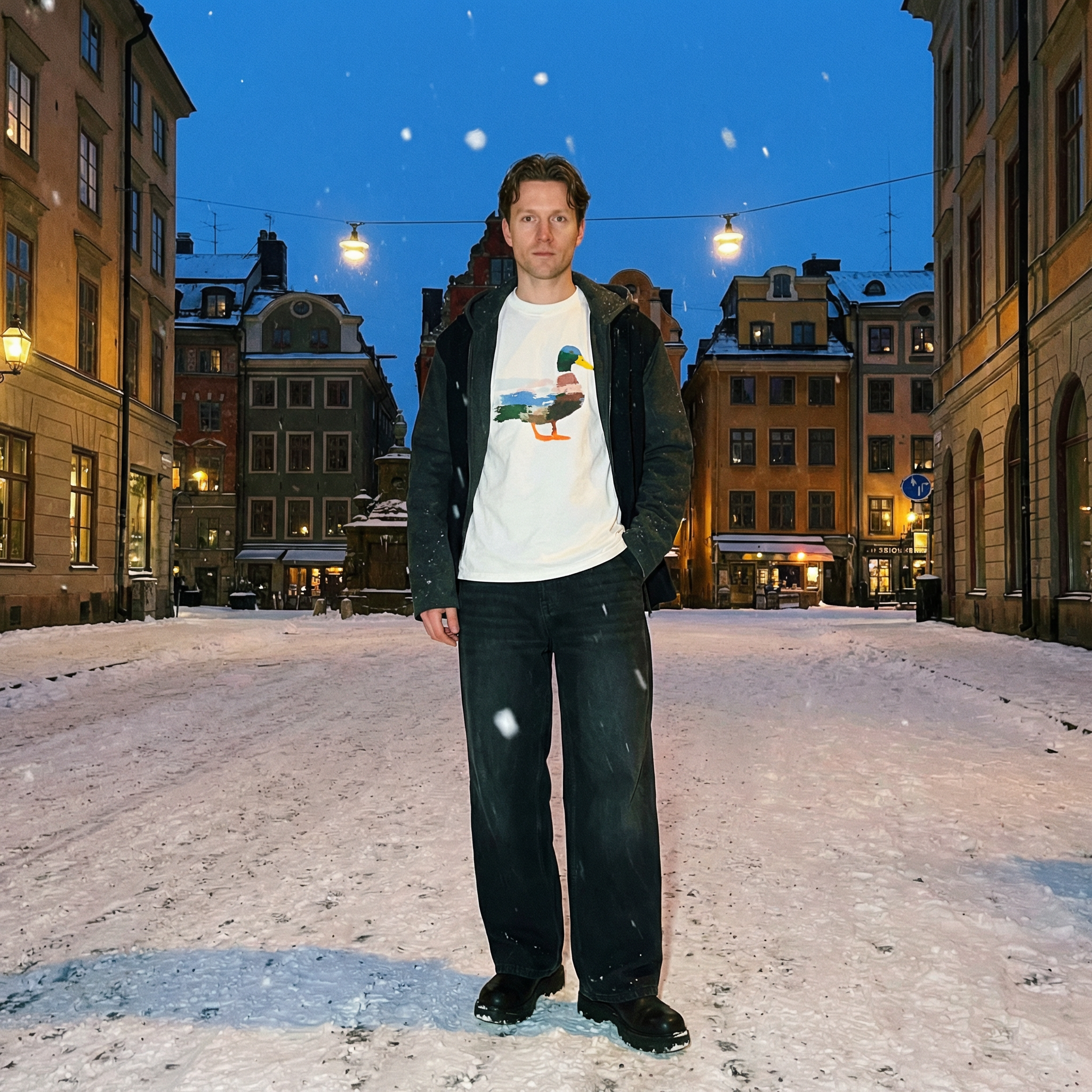 Heavyweight cotton tee featuring a bold coloured duck graphic that makes a statement. Built to last with substantial fabric weight and a relaxed fit that works for everyday wear. The durable construction means it'll hold its shape and colour wash after wash. Perfect for those who want quality basics with personality.