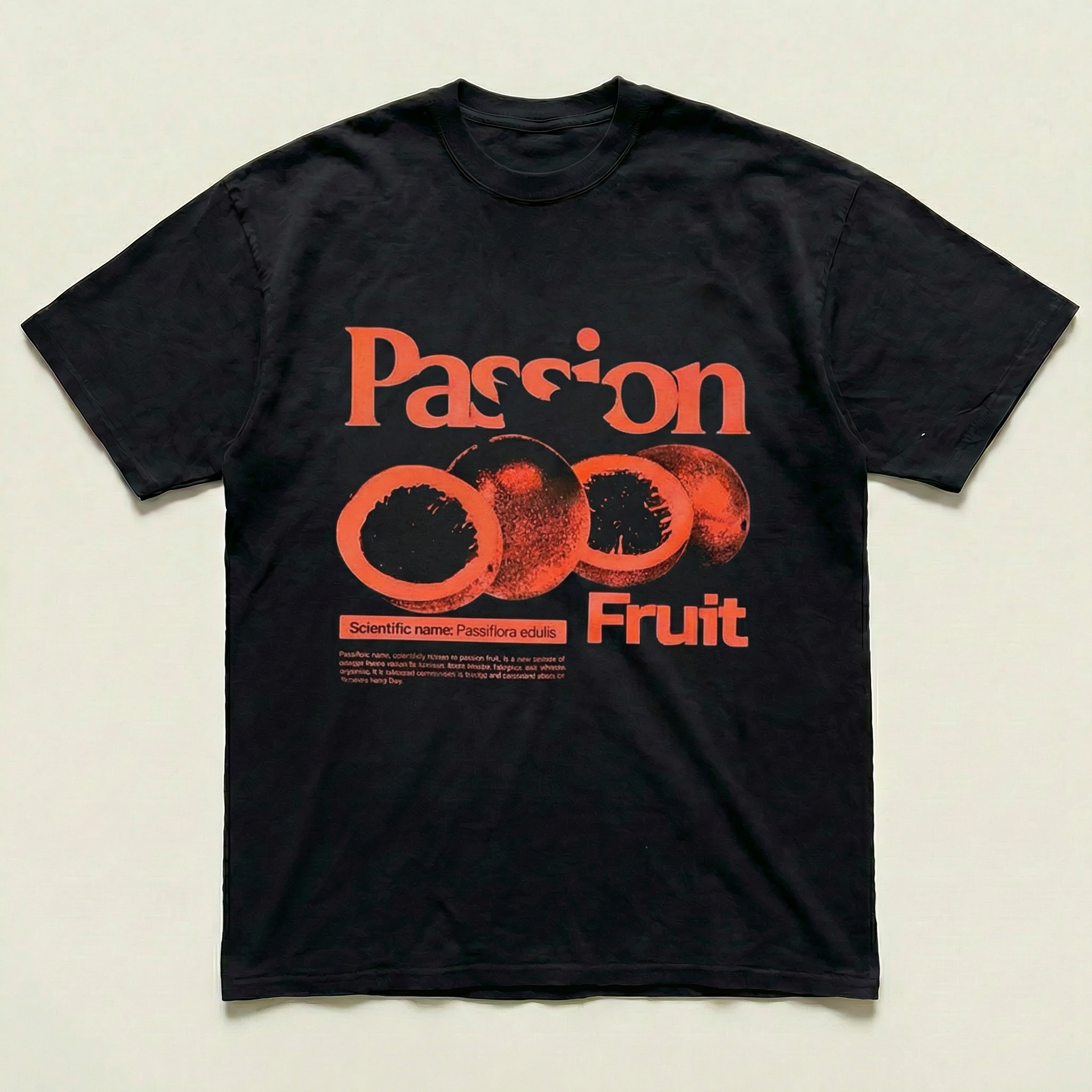 Black Passionfruit Tee Bring tropical vibes to your everyday style with this Black Passionfruit tee. Featuring vibrant passionfruit-inspired artwork against a classic black base, this shirt blends nature-inspired design with modern comfort. The quality cotton fabric keeps you cool and comfortable all day long, while the eye-catching graphic adds personality to your wardrobe. Ideal for those who appreciate bold, fruity aesthetics and want to stand out from the crowd. Layer it, dress it down, or wear it solo—this versatile tee works for any occasion.