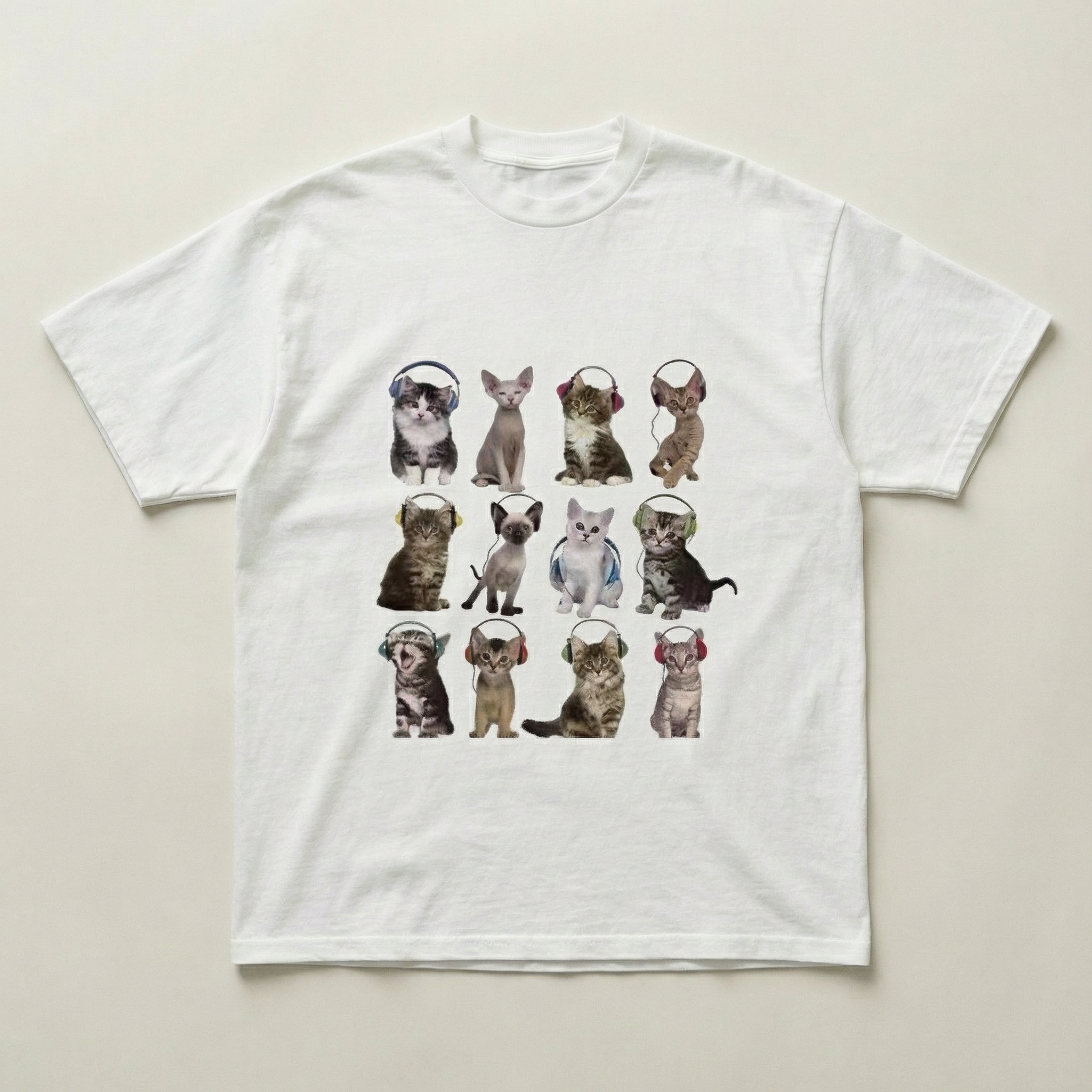 Express your love of music and cats with the Headphones cat standard tee. This charming graphic tee combines two beloved themes into one wearable design. Made from reliable, comfortable fabric perfect for daily wear, it works great layered or on its own. A quirky essential that lets your personality shine through.