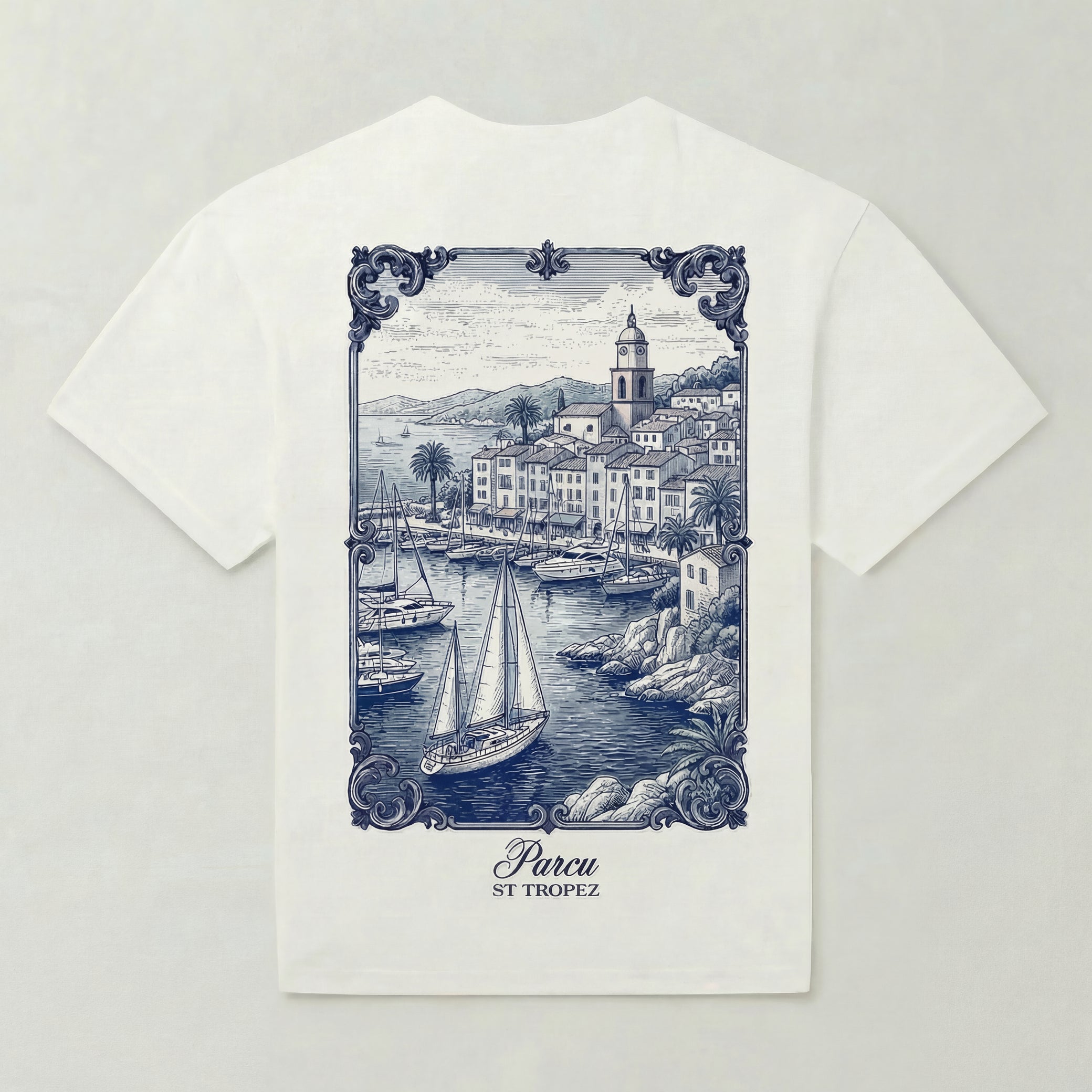 St Tropez Heavyweight Tee Crafted from premium heavyweight cotton, this tee delivers substantial comfort and durability for everyday wear. The relaxed fit and classic crew neck make it a versatile staple that pairs effortlessly with jeans, shorts, or layered pieces. Built to last through countless washes, the robust fabric resists fading and maintains its shape season after season. A timeless essential that works as hard as you do.